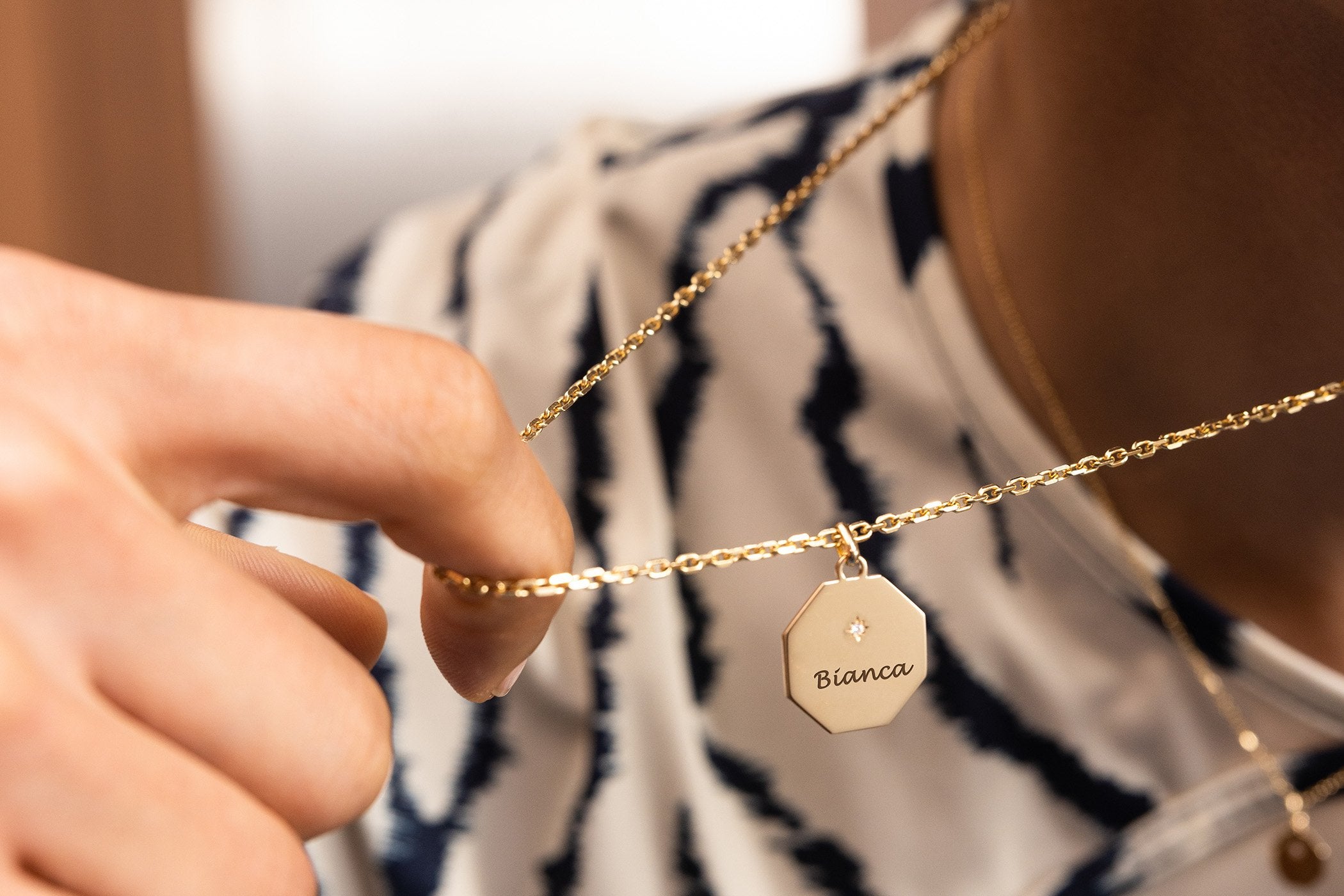 Poinçon 22 crée des bijoux contemporains destinés à accompagner les femmes tout au long de leur vie. Chaque bijou, dessiné par la créatrice Jessica et réalisé par des artisans joailliers, est fabriqué en or 18 carats recyclé à 95 % et pierres précieuses ou fines. Grâce à leur possibilité à être personnalisés, ces pendentifs, bracelets, bagues, alliances, médailles et boucles d’oreilles deviennent des bijoux en or 18 K porteurs d’émotions et de sens.