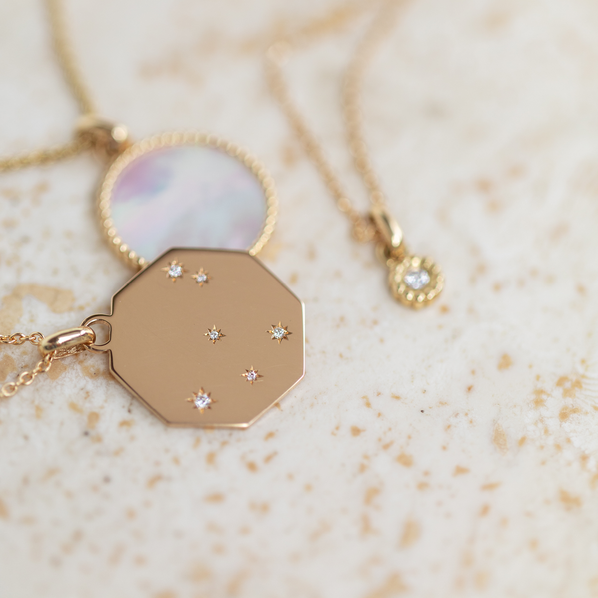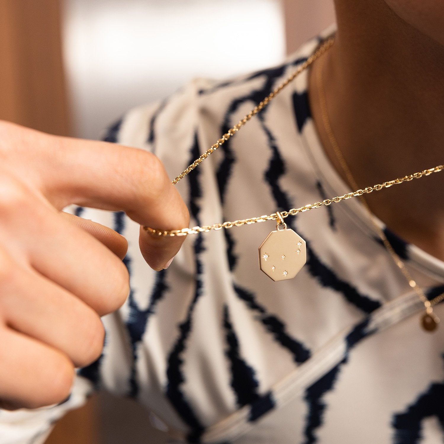 “Une médaille qui mêle à la fois modernité avec sa forme octogonale et discrétion avec sa lecture subtile de la constellation zodiacale. Un bijou qui vous représente et vous sublimera.” - Jessica, créatrice de Poinçon 22