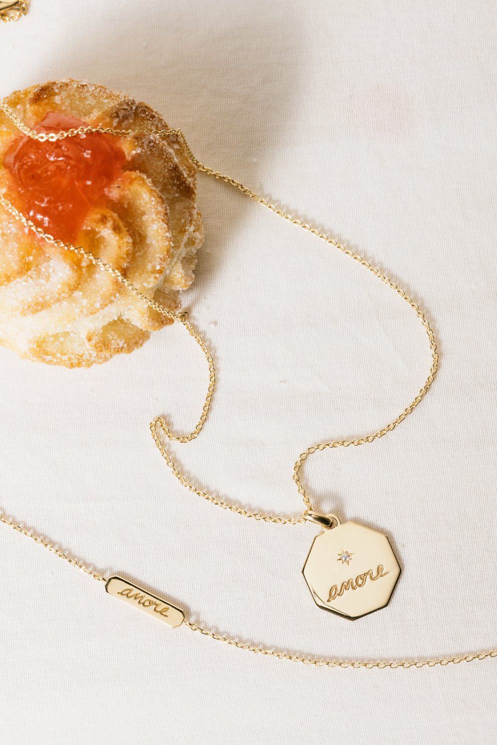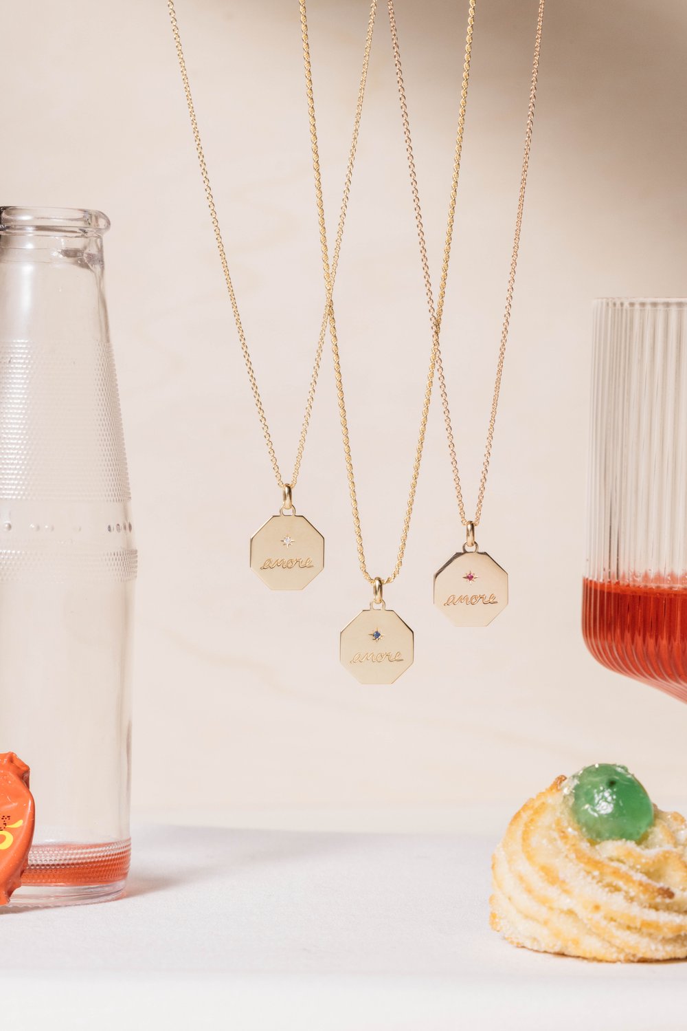 Octogonale, sertie d’un diamant et gravée par nos artisans joailliers, le collier de la collection Amore se distingue par son intemporalité et son romantisme. Le diamant est parfaitement approprié sur cette médaille, évoquant l’éternité et la force.