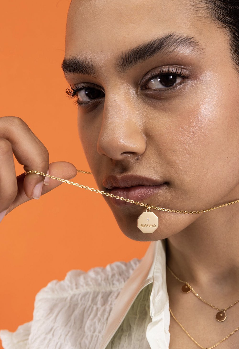 La médaille Mamma a été façonnée par nos artisans joailliers pour les femmes qui souhaitent garder leur rôle de maman près de leur coeur. Sa forme octogonale ultra moderne en fait un bijou en or 18 carats durable et moderne dont vous ne vous lasserez pas.