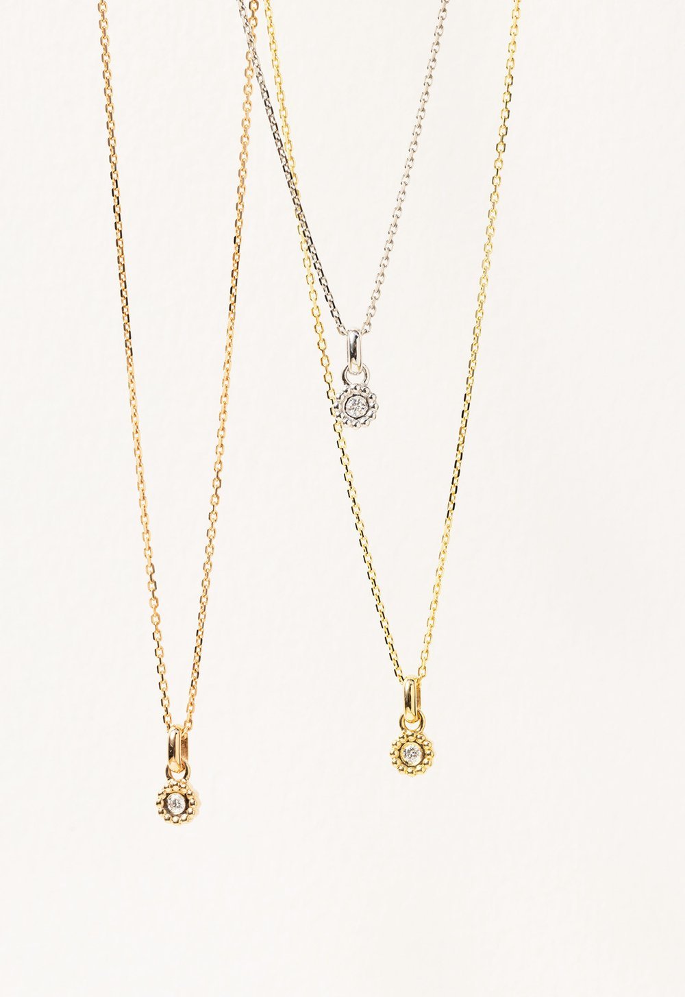 Le pendentif Marguerite, plutôt porté sur une chaîne de 40 ou 45 cm, est le collier à avoir. C’est le premier pendentif diamant que l’on aime offrir ou s’offrir. L’indispensable qui se marie avec tout et qui nous accompagne au quotidien.