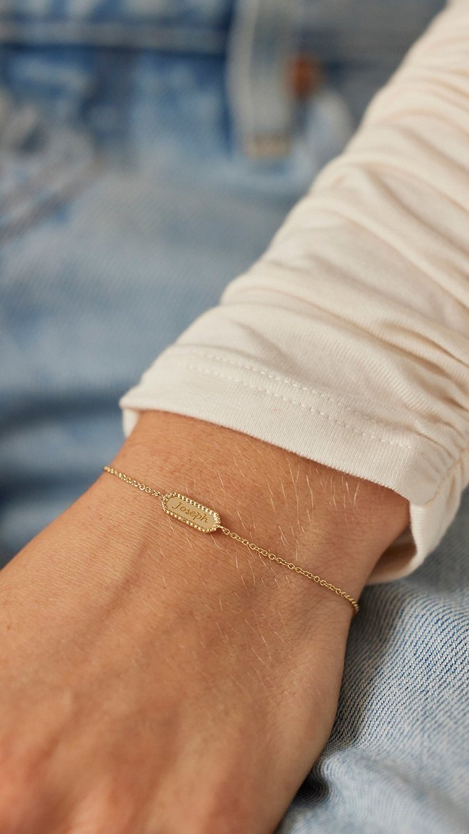 Les bracelets My Poinçon 22 et Gourmette complètent à la perfection la collection. Ils reprennent la forme de la médaille octogonale emblématique tout en finesse ainsi que la personnalisation : une plaque en or telle une gourmette. Les bracelets sont disponibles pour adulte, il mesure 17 cm avec des anneaux d’ajustement à 16 cm et 15 cm, ainsi qu’en taille enfant, dans ce cas il mesure 15 cm avec des anneaux d’ajustement à 14 cm et 13 cm.