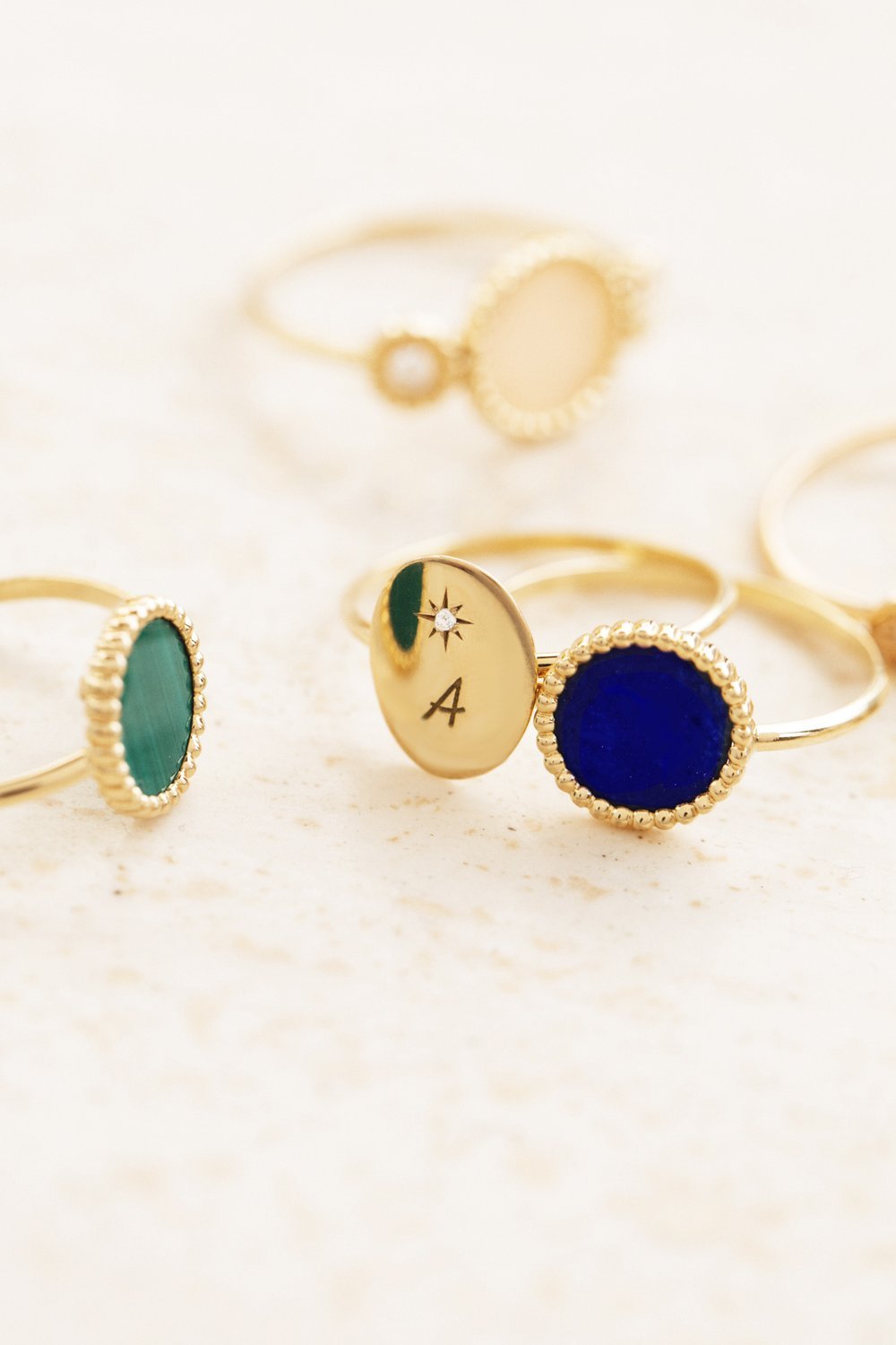 Le lapis lazuli, très apprécié en joaillerie est souvent associé à l’or blanc 18 carats qui accentue sa couleur bleue nuit. L’or jaune 18 carats est également utilisé avec le lapis lazuli car il permet de rappeler les paillettes couleur or que l’on retrouve dans la pierre. Poinçon 22 a choisi de l’associer à l’or jaune pour son rendu plus chaleureux.