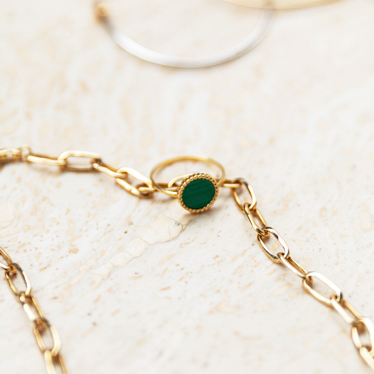 C’est à travers la collection Nuances que Poinçon 22 a mis en lumière un éventail de pierres fines : malachite, opale, onyx, nacre, lapis lazuli, turquoise, cornaline. Elles ornent les bagues, colliers et bracelets en or 18 carats de la collection pour apporter une touche de couleur à vos tenues. Toutes ont des vertus, significations et symboliques fortes et bien à elles.