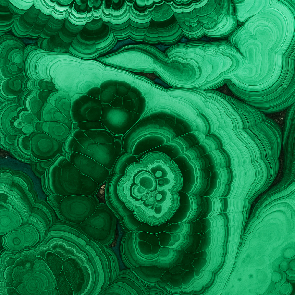 La pierre malachite est une pierre épaisse recouverte de fins vaisseaux colorés, ce qui fait sa singularité.