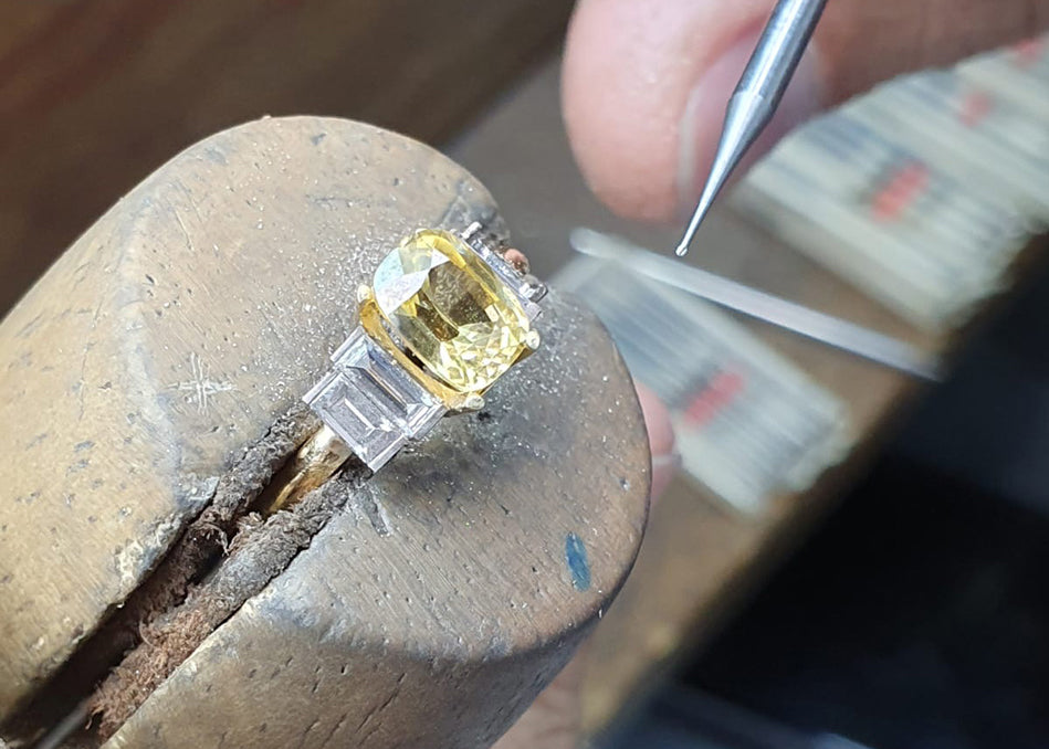 Nous travaillons en étroite collaboration avec des artisans joaillier pour vous assurer la meilleure qualité de réalisation. La magie de leurs mains opère pour donner vie à votre création unique. Pour chaque bague faite sur-mesure, de nombreux aller-retour sont fait afin que nous puissions suivre sa création à leurs côtés et nous assurer que le bijou réponde à vos envies.