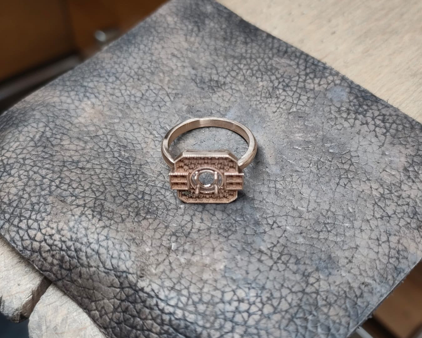 Votre bijou verra le jour en premier lieu en 3D afin que vous puissiez avoir un premier aperçu de votre pièce. Cette première modélisation nous permettra de faire les premiers ajustements concernant les pierres et la forme du bijou.