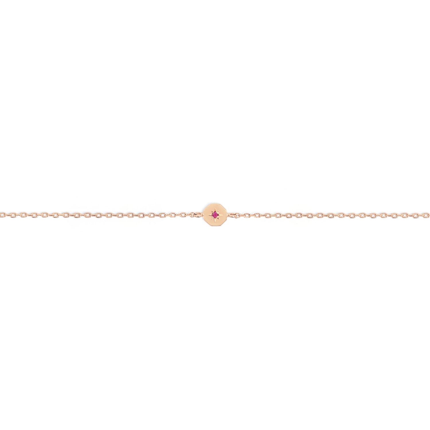 Empreint de légèreté le bracelet Éternité reprend l'emblématique médaille octogonale Poinçon 22. Serti d'un rubis, le bracelet Éternité apporte une touche de couleur à votre poignet. Un intemporel que vous pouvez porter aussi bien de jour que de nuit !