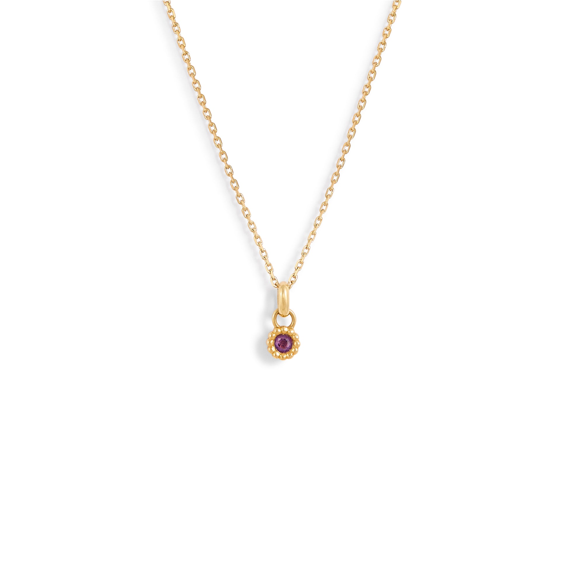 Le pendentif Marguerite dévoile une améthyste lumineuse, entourée de délicates perles d’or évoquant les pétales d’une fleur. Réalisé en or 18 carats, cette création raffinée joue sur la douceur de la couleur et la finesse des détails.